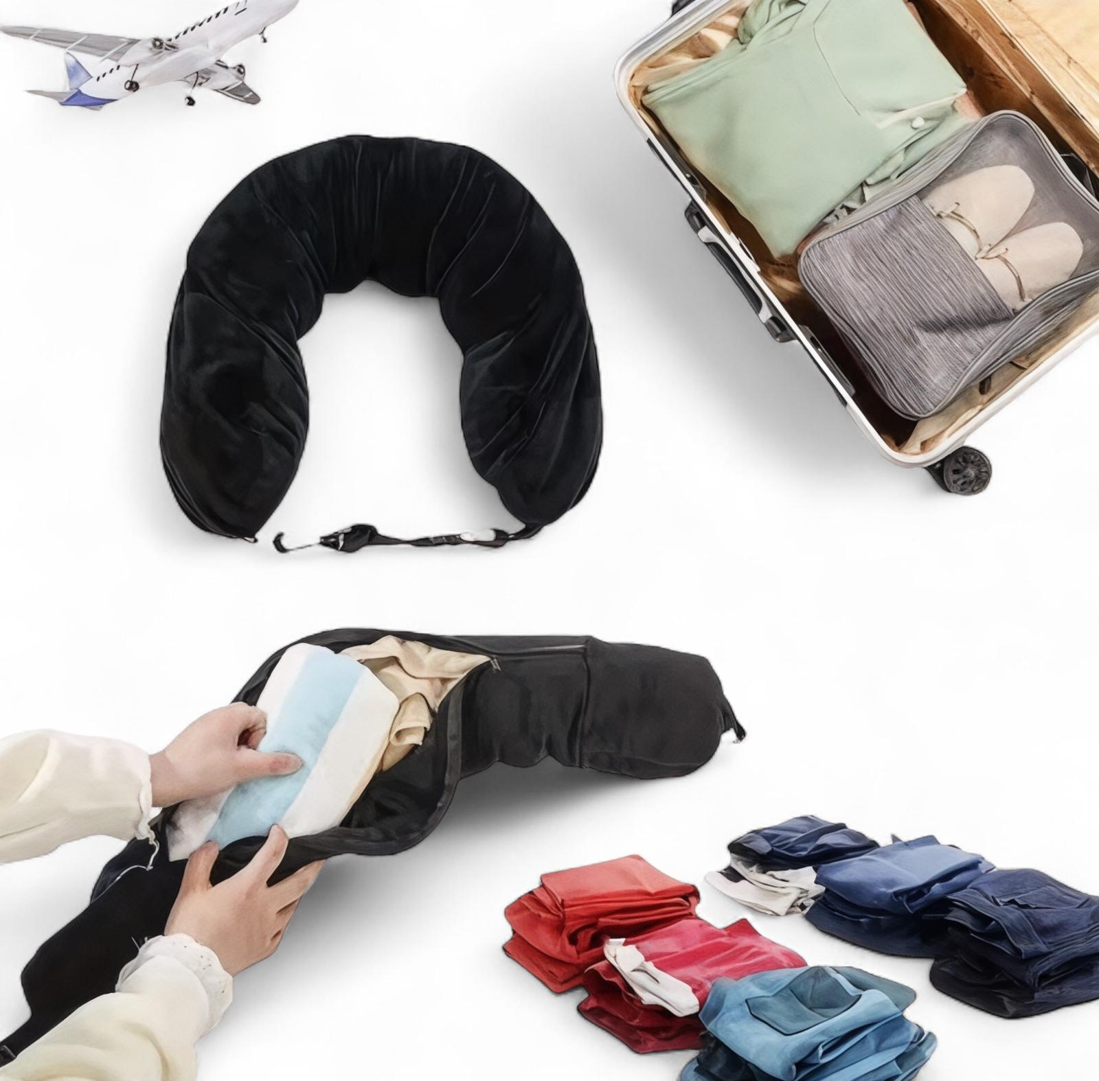 This velvet neck pillow combines soft comfort with practical storage, giving you extra space for your travel essentials while keeping your neck supported. Lightweight, adjustable, and perfect for every journey.