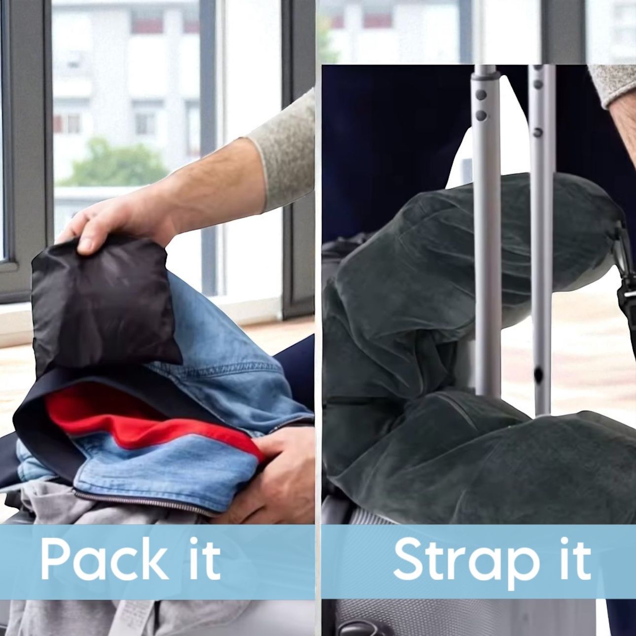 Our refillable velvet neck pillow is designed for ultimate flexibility on the go. Pack it compactly into your luggage or simply strap it onto your suitcase – always ready whenever you need comfort. Lightweight, portable, and practical for every journey.