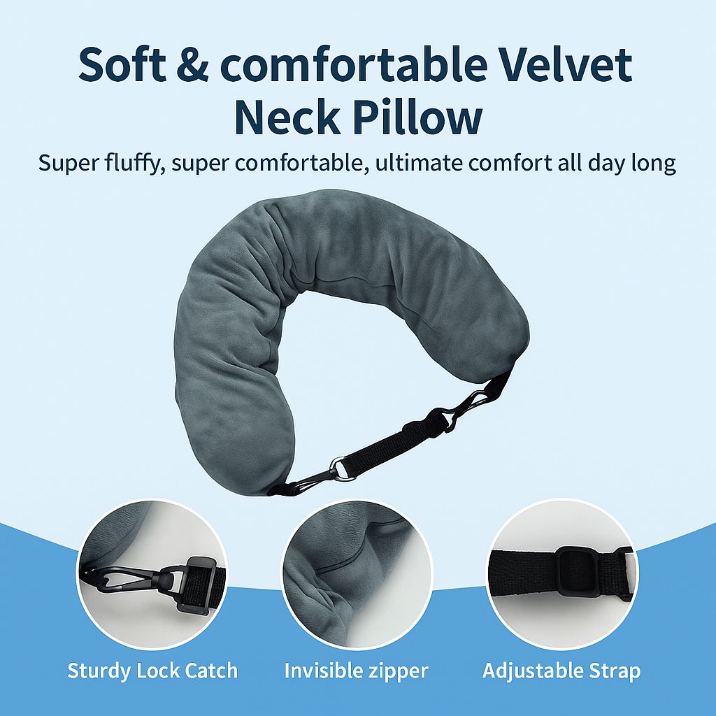 Discover ultimate comfort with our soft velvet neck pillow – super fluffy, gentle on the skin, and designed for all-day relaxation. With a sturdy lock catch, invisible zipper, and adjustable strap, it’s the perfect travel companion for maximum comfort wherever you go.